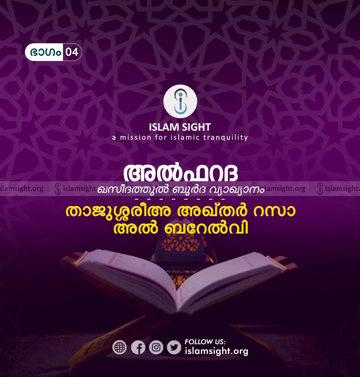 ഖസ്വീദതുൽ ബുർദയിലെ രണ്ടാമത്തെ വരിയെ കുറിച്ച് നാം സംസാരിച്ചു. ഇനി മൂന്നാം വരിയിലേക്ക് കടക്കുകയാണ്.