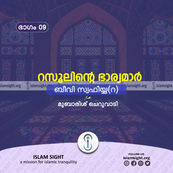 ഹിജ്റയുടെ പത്ത് വർഷങ്ങൾക്ക് മുമ്പ് ഖൈബറിലാണ് തിരുനബിയുടെ പത്നിയായ സ്വഫിയ്യ (റ) ജനിച്ചത്. ബുദ്ധിമതിയും കുലീനയുമായ മഹതി മൂസ നബിയുടെ സഹോദരൻ ഹാറൂൻ നബിയുടെ സന്താന പരമ്പരയിൽ പെട്ടവരാണ്. ബനൂ ഖുറൈള ഗോത്രത്തിലെ ബറ് ബിൻത് ശമൗഅൽ ആണ് മഹതിയുടെ മാതാവ്. ബനുന്നളീർ ഗോത്രക്കാർക്ക് മദീനയിൽ നിന്ന് അവധി പ്രഖ്യാപിക്കപ്പെട്ടപ്പോൾ അവർ ഭൂരിപക്ഷം ആളുകളും ഖൈബറിലേക്ക് പോയി. സ്വഫിയ്യ(റ)യുടെ പിതാവായ ഹുയയ്യും ഈ കൂട്ടത്തിൽ ഉണ്ടായിരുന്നു. കൊച്ചു കുട്ടിയായിരുന്ന സ്വഫിയ്യയും പിതാവിന്റെ കൂടെ പോയി.